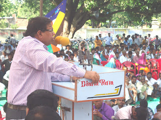 साथियों आजादी मिलकर लगभग 65, 66 साल हो गया है। तथाकथित आजादी जो लोग इसको आजादी कहते है। इस आजादी में हमारें लोगों की समस्याओं का समाधान नहीं हुआ। अनुसूचित जाति के लोगाें की समस्याओं का समाधान नहीं हुआ आदिवासियों की समस्याओं का समाधान नहीं हुआ। पिछड़े वर्ग की समस्याओं का समाधान नहीं हुआ। और जो अल्पसंख्याक लोग है उनकी समस्याओं का समाधान नहीं हुआ। समस्याओं का केवल संचय हुआ संगड़य हुआ। और हजाराें हमारी समस्याओं का संचय हो रहा है। इस बात को ध्यान में रखते हुए कि इस देश का जो शासक वर्ग है उन्हाेंने हमारी समस्याओं का समाधान नहीं किया। केवल संचय किया उन लोगों के कानों तक इस महारैली का आयोजन किया गया है।